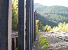WCC was called to stabilize a hillside near Glacier National Park in Montana by driving H piles to form a retaining wall, protecting the track traveled by the Burlington Northern (BN) Freight Line. Because of their expertise in piledriving, ability to work in unusual circumstances, and willingness to travel to out-of-the-way jobsites, WCC was asked to help with this unique project. Although its scope was a relatively small, this job underscores WCC's reputation and abilities, which are recognized by many organizations throughout the Pacific Northwest and Northern California.