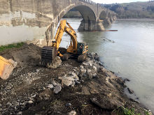Heavy rains throughout the winter caused the Eel River to flow higher and faster than usual. This created substantial bank erosion, undermining the historic Fernbridge on Route 211 north of Fortuna. WCC was on site stabilizing the bank and placing rip rap to prevent further erosion.
