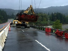 Because of our crane experience, Caltrans asked WCC to assist another contractor in placing rip rap along a section of Salmon Creek Road near Miranda. Heavy rains had caused bank erosion of Salmon Creek, putting the road above in danger of sliding. WCC brought in a crane to place over 7000 tons of rip rap over a four week period to stabilize the bank and prevent further erosion.