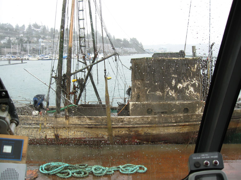 The 65-foot F/V Helen McColl, a 99 year-old wooden salmon troller, sank in the bay at Newport in November of 2009. After initial efforts to raise the vessel failed, WCC was called in February, 2010 to remove the boat from the bottom of the bay. As WCC was already performing work in the bay, this was a very cost effective solution for the Port of Newport. The salvage operation was performed with WCC's 160 ton crane sitting aboard our barge. This is one of many projects that WCC has helped the Port of Newport with over the years.