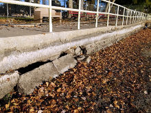 WCC's work consisted of constructing a 534 foot sheetpile wall to replace the existing crumbling concrete structure. 25 foot sheets were driven along the edge of the current sidewalk, then were topped with a concrete cap. Docks for the boat ramps on 1st and 3rd streets were reattached and utilities to the docks relocated as needed.