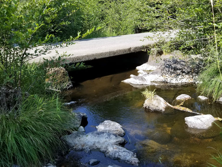 The existing bridge, a single lane concrete structure, was about three feet above the creek. It was built in 1961 as a seasonal logging road without guardrails to allow debris to flow over it easier. At that time, only two people lived across the road. Now dozens of residents depend on the bridge daily.