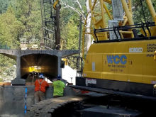 WCC will replace the small, aging structure with a much larger bridge sitting about 16 feet higher than the original. Concrete abutments will be constructed on either end and 135 ft. concrete beams, each weighing 140,000 lbs, will be set on the abutments. As the new bridge is much higher, fill will be brought in as a base for the new road, which will extend 200 feet on either end of the bridge. The beams will form the base for the road, which will be paved on both sides of the bridge for about 200 ft.