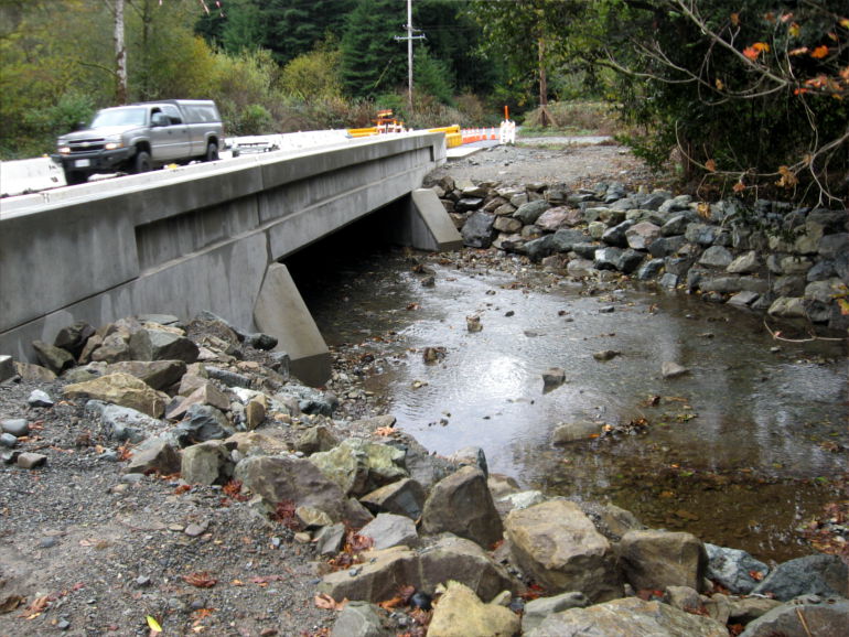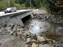 When the portion of California State Highway 197, which crosses over Sultan Creek near Crescent City, California failed, CALTRANS decided to replace the current culverts with a section of bridge. When culverts need to be replaced, bridges are the preferred structure as they greatly enhance fish passage.