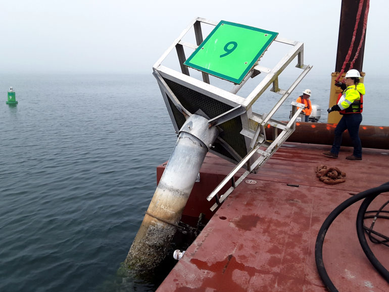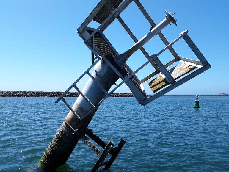 In 2017, a cruise ship bumped a fixed ATON in Crescent City Harbor, damaging the steel piling supporting the light. WCC mobilized a crane and barge at the harbor and replaced the damaged piling, helping to make sure the harbor remains safe for marine traffic.