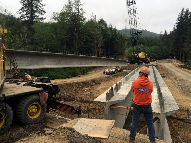 In March of 2016, West Coast Contractors (WCC) was awarded a contract to build two bridges for Weyerhaeuser Corporation on their 174,000 acre Millicoma Tree Farm near Coos Bay, Oregon.